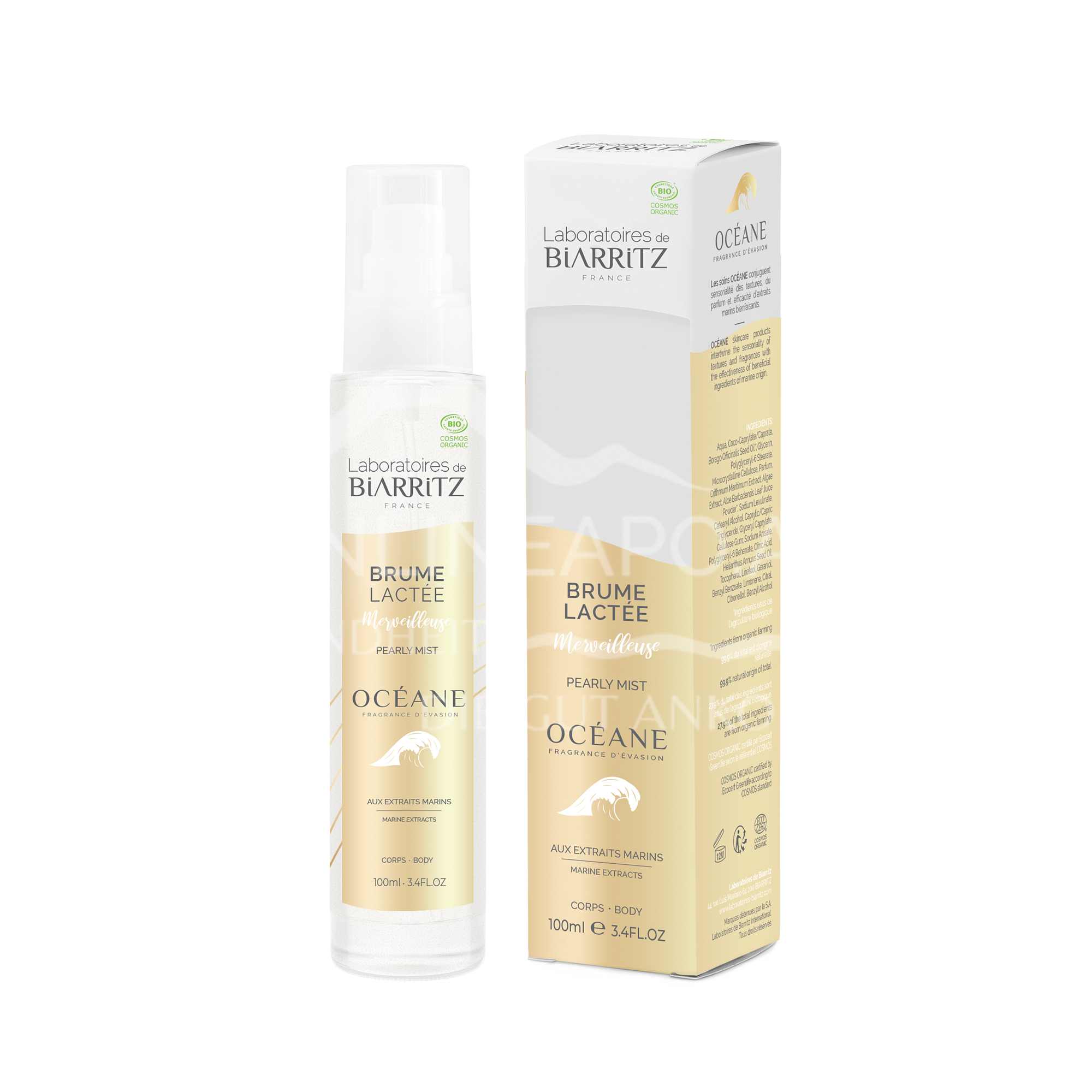 Das Océane Pearly Mist ist eine leichte Körpermilch in Sprayform, die die Haut erfrischt und befeuchtet.