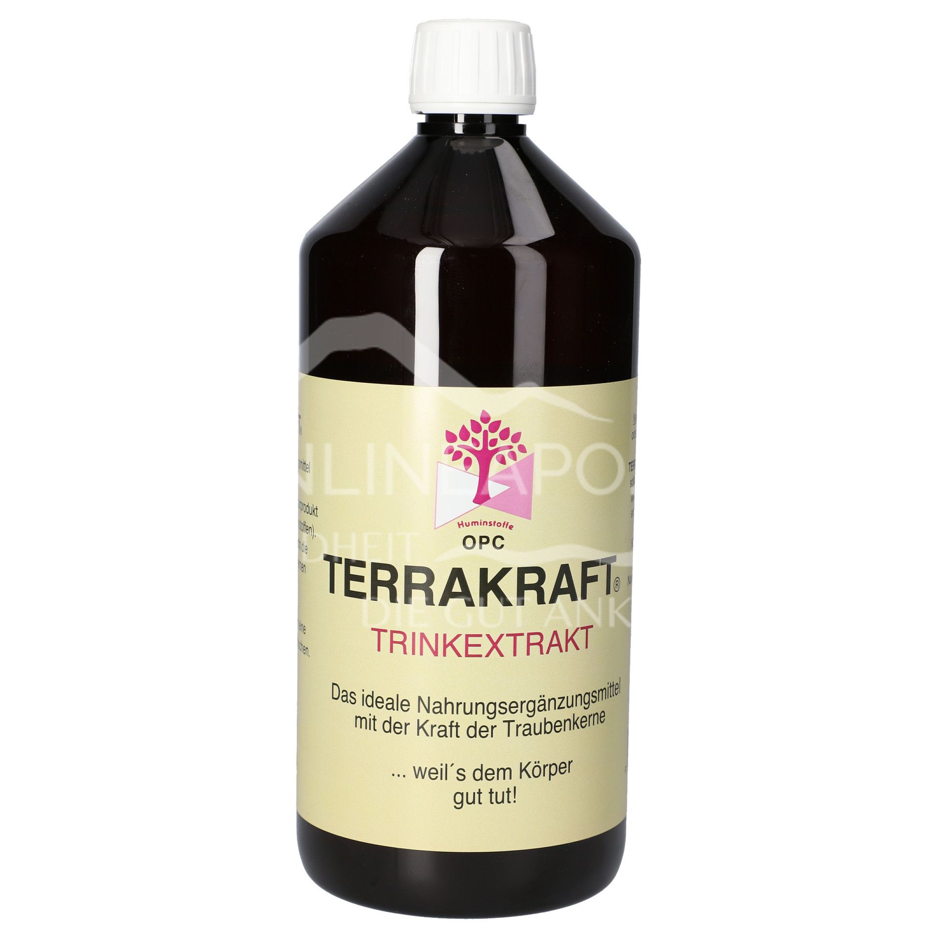 Terrakraft® ist ein reines Naturprodukt mit Phytohuminen (Pflanzenhuminstoffen). Die Huminsäuren enthalten die lebenswichtigen Vitamine B und E, essentielle Aminosäuren, Fruchtsäuren, sowie Mineralstoffe und Spurenelemente wie Magnesium, Kupfer, Mangan, Bor, Molybdän, Selen, Zink etc. und fördern die natürliche Abwehrkraft des Körpers.