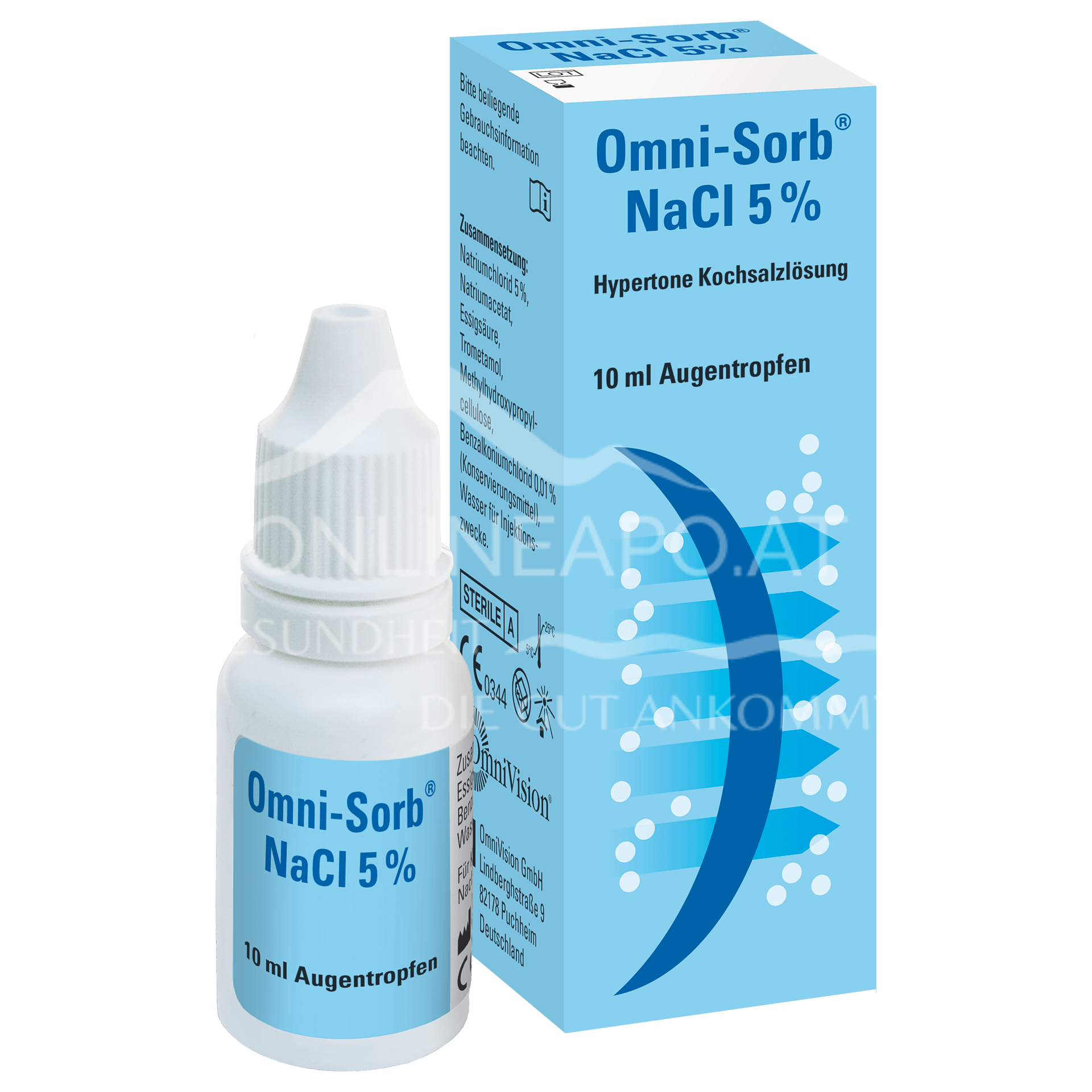 Omni-Sorb® 5% NaCl Augentropfen sind ein Medizinprodukt zur Behandlung von Hornhautödemen. Die Lösung entzieht der Hornhaut überschüssige Flüssigkeit, lindert Schwellungen und verbessert die Sicht. Ideal bei postoperativen oder krankheitsbedingten Ödemen.