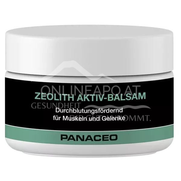 Panaceo Zeolith Aktiv-Balsam mit PMA-Zeolith® und Pflanzenstoffen für Regeneration und Wohlbefinden. Ideal bei beanspruchter Haut und nach dem Sport. Durchblutungsfördernd für Muskeln und Gelenke.