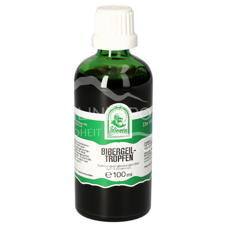 Die Pater Severin Bibergeil Tropfen sind ein Nahrungsergänzungsmittel zum Einnehmen. Die Bibergeiltropfen enthalten einen hochwertigen wässrig/alkoholischen Auszug aus Bibergeil (Castoreum).