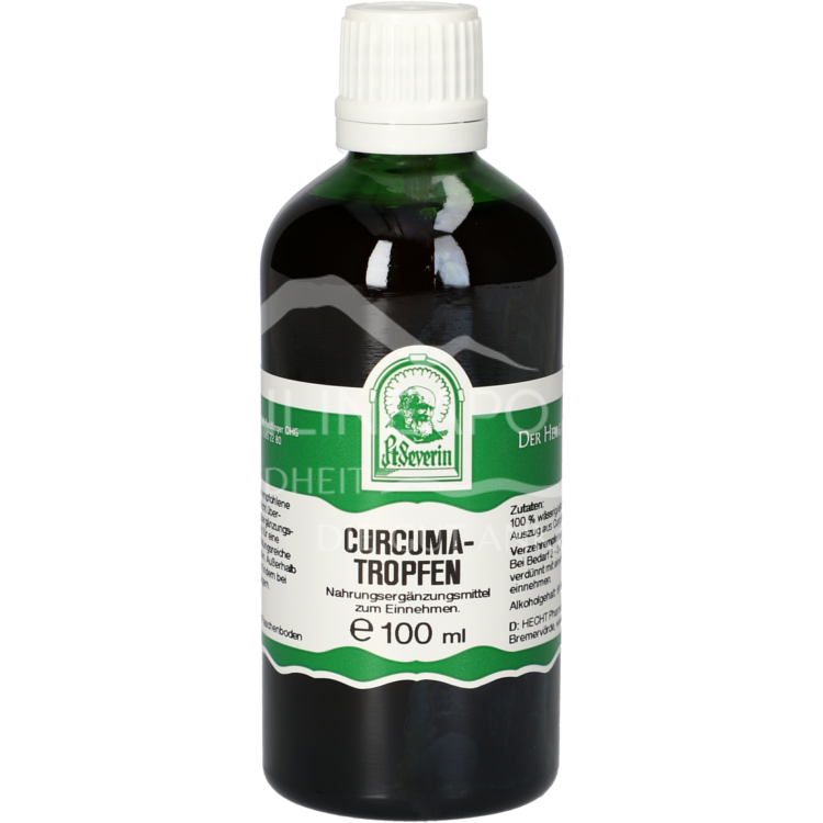Die Pater Severin Curcuma Tropfen sind ein Nahrungsergänzungsmittel zum Einnehmen. Die Curcumatropfen enthalten einen hochwertigen wässrig/alkoholischen Auszug aus Curcumawurzel.