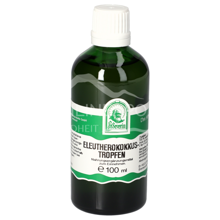Die Pater Severin Eleutherokokk Tropfen sind ein Nahrungsergänzungsmittel zum Einnehmen. Die Eleutherokokktropfen enthalten einen hochwertigen wässrig/alkoholischen Auszug aus Eleutherokokkuswurzel.