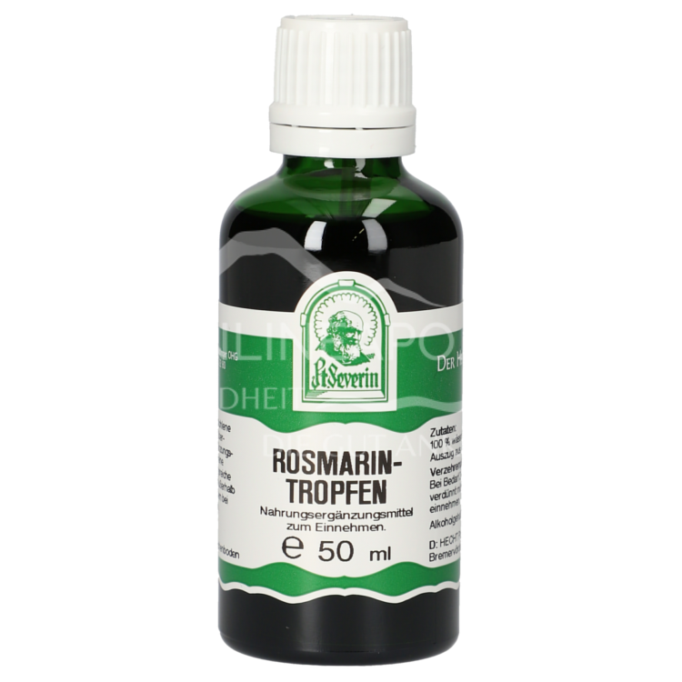 Die Pater Severin Rosmarin Tropfen sind ein Nahrungsergänzungsmittel zum Einnehmen. Die Rosmarintropfen enthalten einen hochwertigen wässrig/alkoholischen Auszug aus Rosmarinblättern.