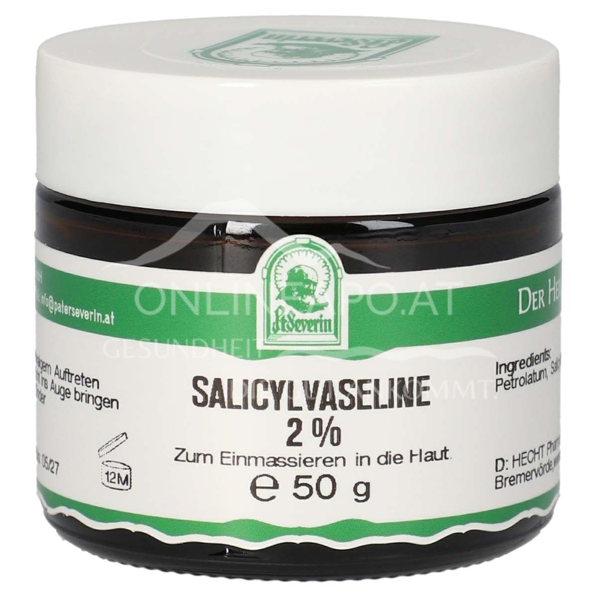 Die Pater Severin Salicylvaseline 2% Salbe dient zur Anwendung auf der intakten Haut. Die Eigenschaften und Anwendungsgebiete von Salicylvaseline sind sehr vielfältig.
