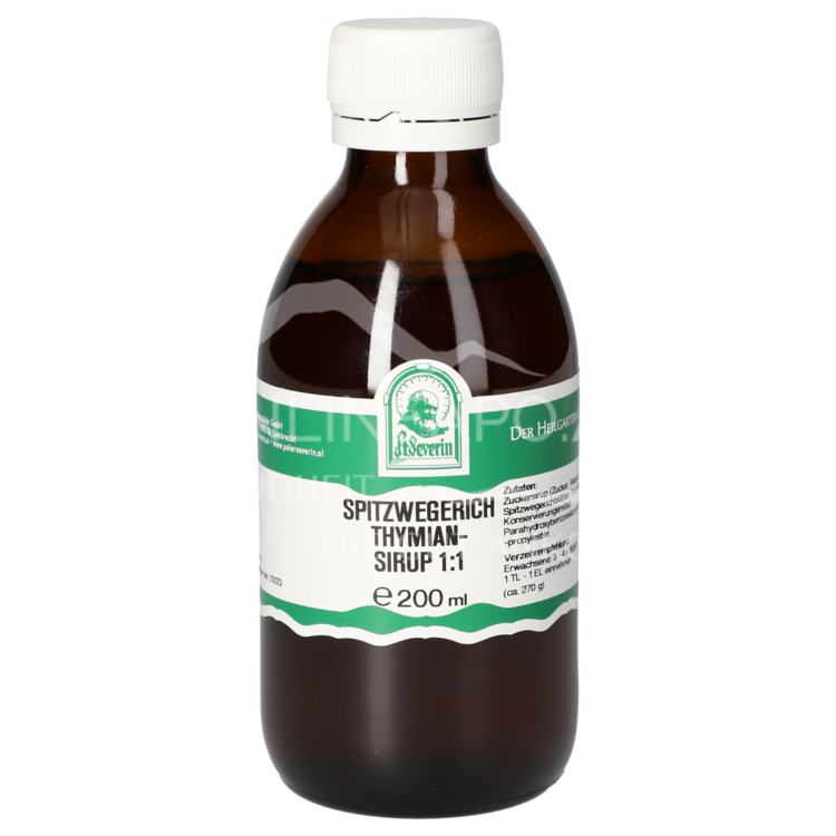 Wohltuender Sirup mit der Kraft von Spitzwegerich und Thymian (1:1). Ideal zur Beruhigung von Hals und Rachen. Alkoholfreie Naturkraft nach Pater Severin für die ganze Familie und Jugendliche ab 12 Jahren. Hochwertige Qualität.