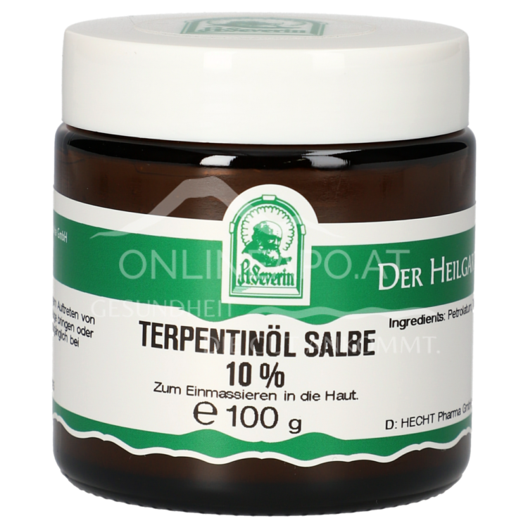 Die Pater Severin Terpentinöl Salbe 10% ist ein Naturprodukt nach traditioneller Klosterrezeptur aus den ätherischen Ölen von Kiefern und Lärchen hergestellt. Eignet sich zum Einmassieren in die intakte Haut.