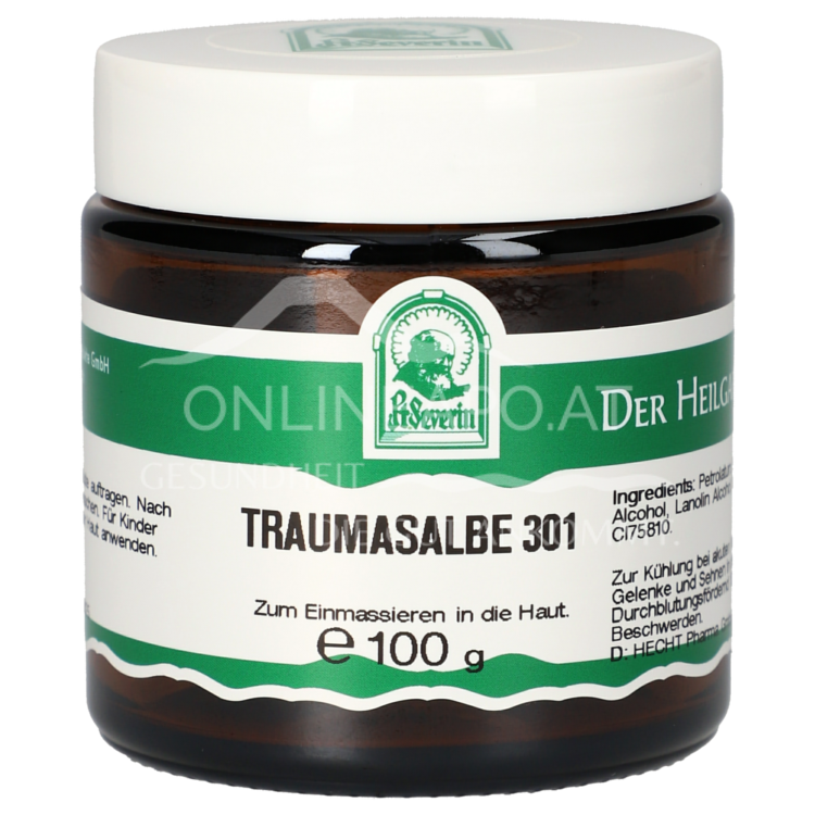 Die Pater Severin Trauma-Salbe 301 dient zum Einmassieren in die intakte Haut. Hergestellt nach Apothekenqualität mit wertvollen Inhaltsstoffen, unter anderem mit Kampfer und Menthol.