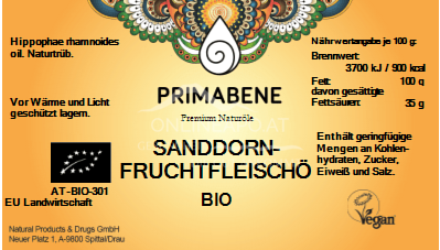 Produktinformationen "Primabene® Sanddornfruchtfleischöl Bio"