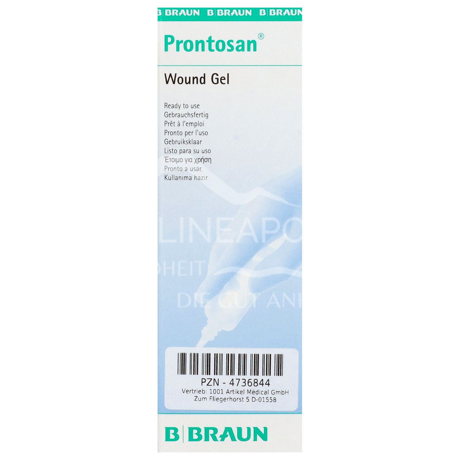 - Für optimale Resultate sollte zur Reinigung der Wunde und des sie umgebenden Hautareals Prontosan® Wundspüllösung verwendet werden, bevor dann der Auftrag von Prontosan® Wundgel erfolgt.