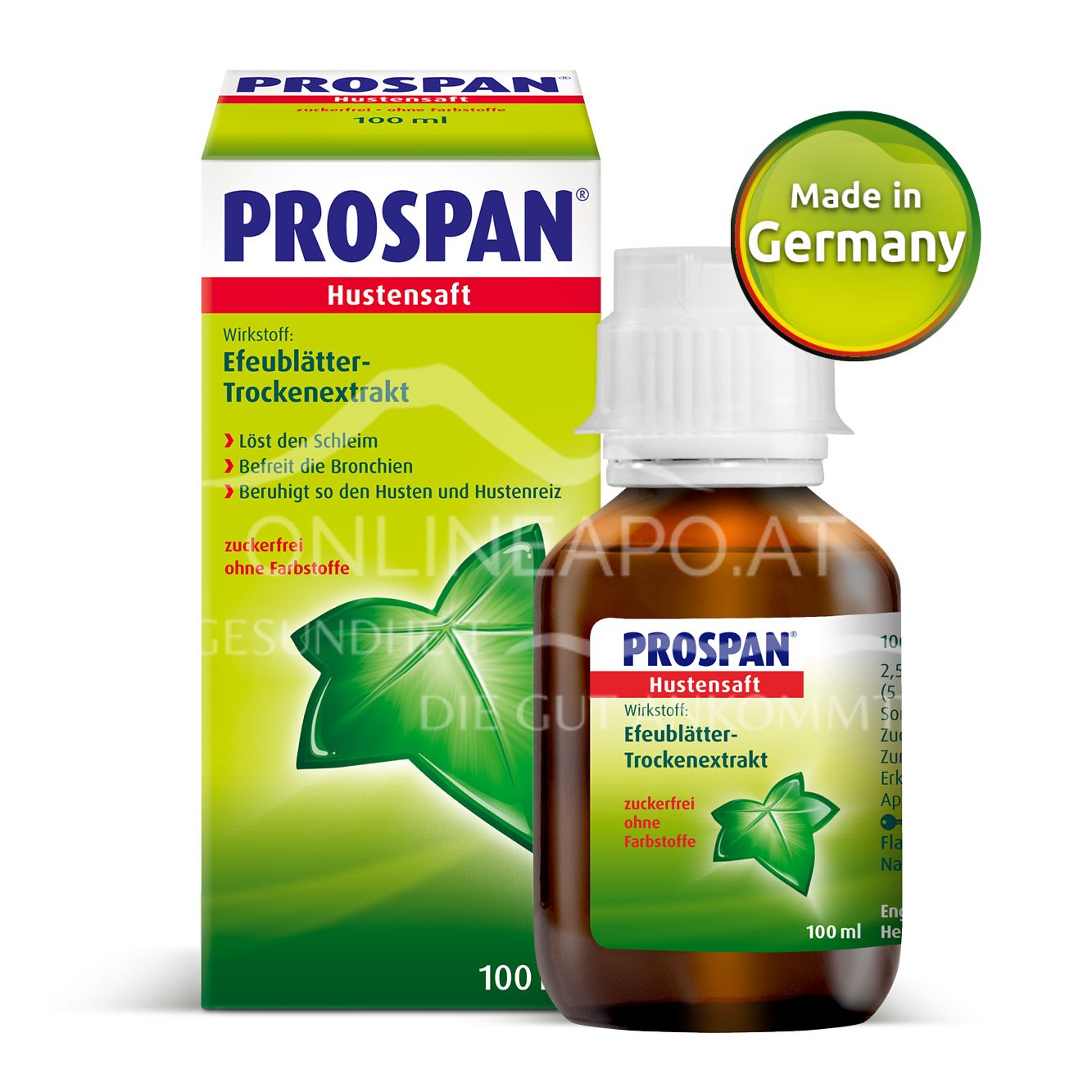 Mit der Kraft des Efeus löst Prospan den Schleim, befreit die Bronchien und beruhigt so den Husten. Prospan ist rein pflanzlich, gut verträglich, für jedes Alter geeignet und in verschiedene Anwendungsformen erhältlich. Der bewährte Prospan Hustensaft lindert wirksam Husten und schmeckt angenehm fruchtig nach Wildkirsche.