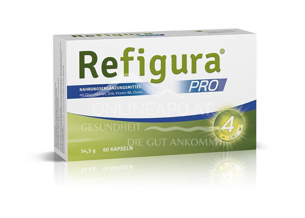 Refigura PRO Kapseln das innovative Abnehmprodukt mit zusätzlicher Stoffwechselaktivierung. Nahrungsergänzungsmittel mit Glucomannan, Vitamin B6, Zink und Chrom.