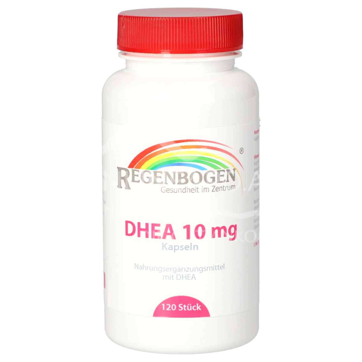 DHEA 10 mg Kapseln von der Regenbogen Apotheke sind ein Nahrungsergänzungsmittel mit Dehydroepiandrosteron (DHEA), einem Hormon, das vom Körper auf natürliche Weise produziert wird.