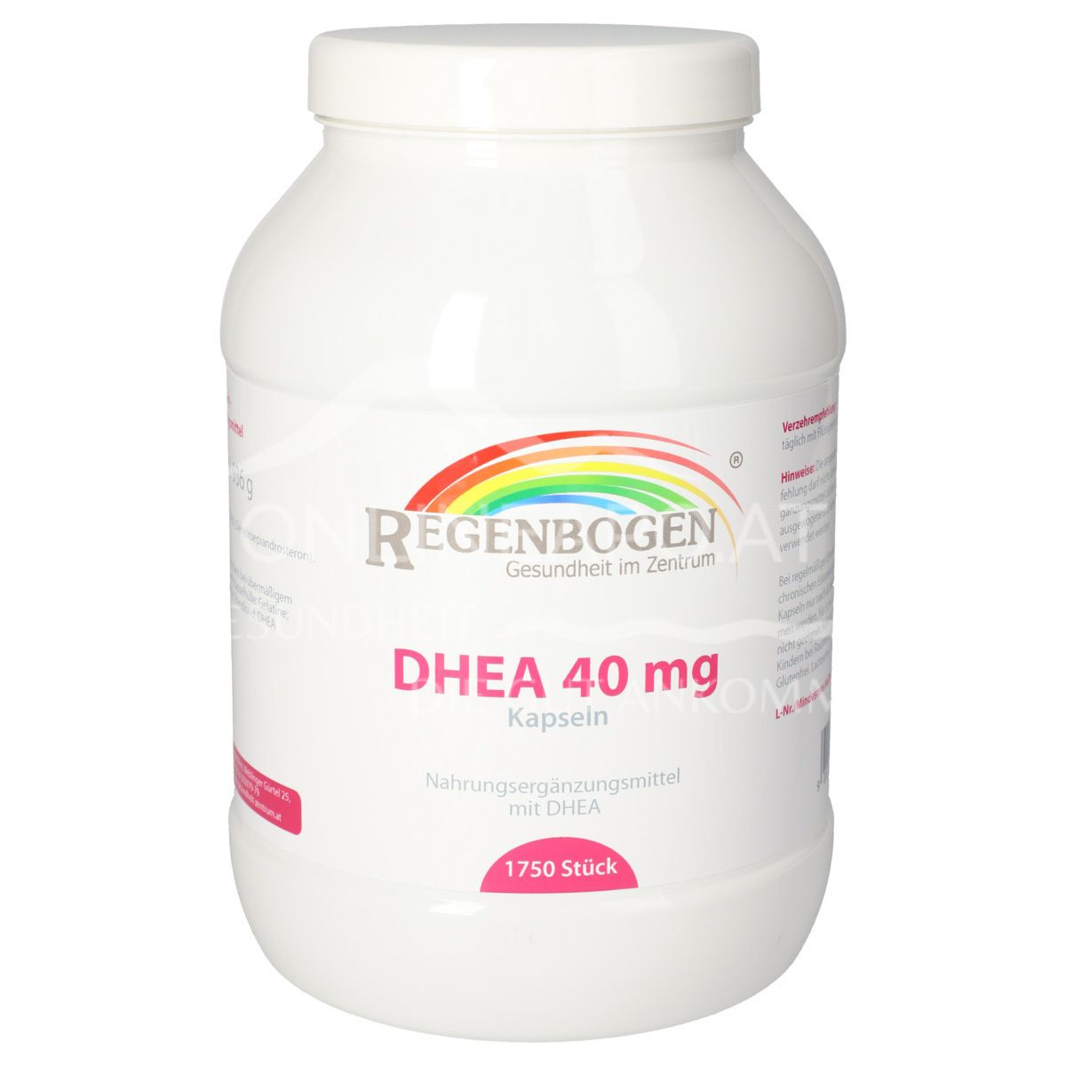 DHEA 40 mg Kapseln von der Regenbogen Apotheke sind ein Nahrungsergänzungsmittel mit Dehydroepiandrosteron (DHEA), einem Hormon, das vom Körper auf natürliche Weise produziert wird.