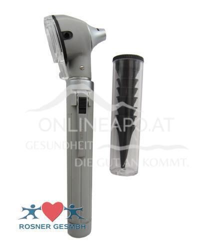 Grau, mit Soft-Tasche und separaten Ohrtrichtern, Batterien kleines und leichtes Otoskop mit Fiberoptik und heller LED-Beleuchtung bietet eine sehr gute Ausleuchtung für höchste Leistungsansprüche. Durch die handliche Form ist das Otoskop ideal für den mobilen Einsatz geeignet. Es bietet ein Höchstmaß an Komfort. Das Sichtfenster hat eine 3-fache Vergrößerung und ist schwenkbar.