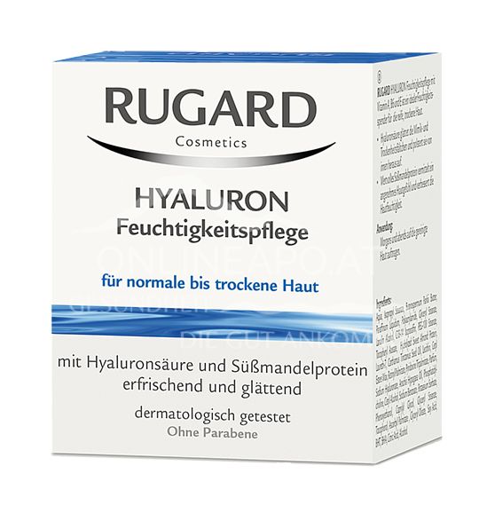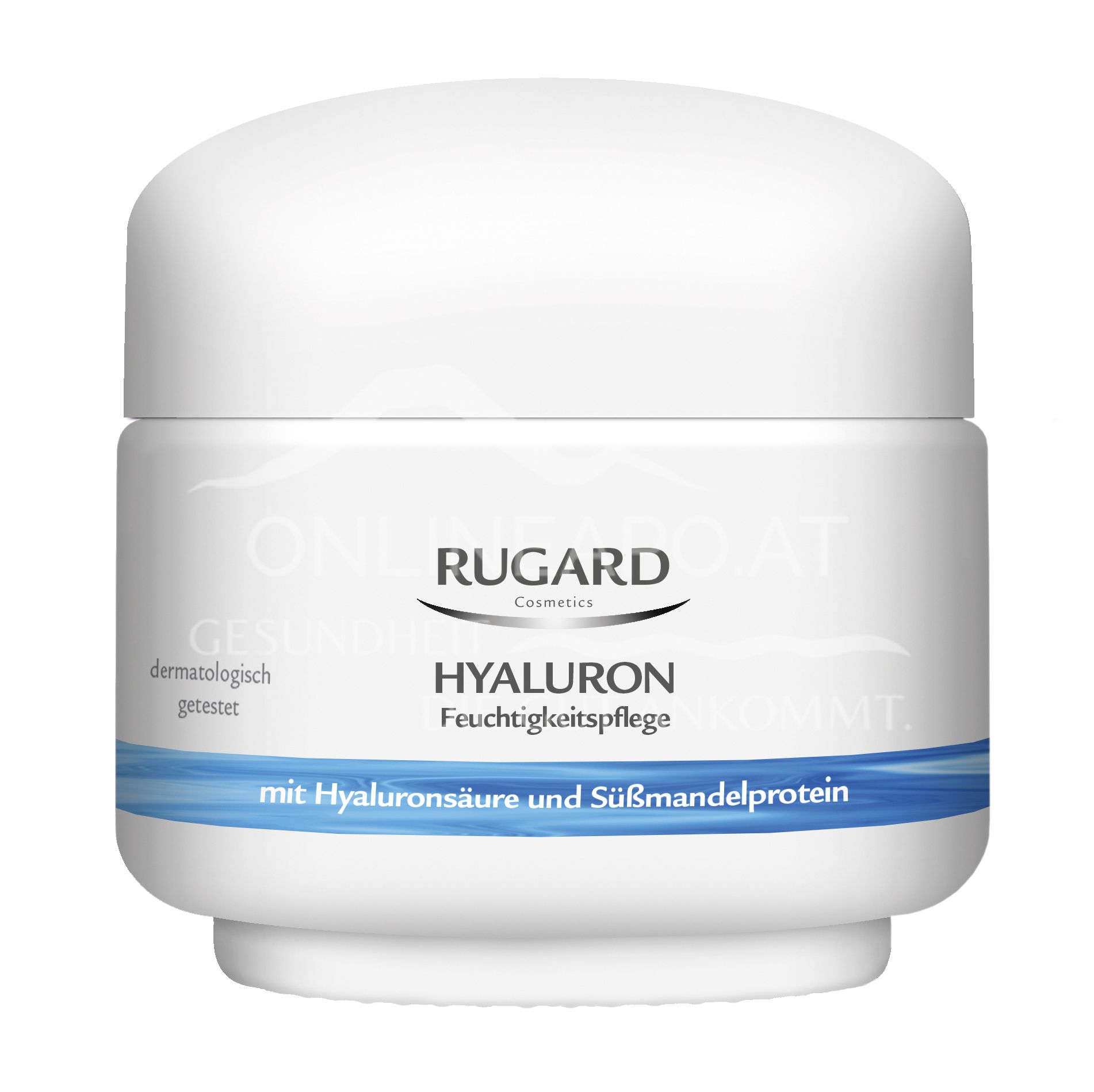 Die RUGARD Hyaluron Feuchtigkeitspflege belebt normale bis trockene Haut, spendet langanhaltend Feuchtigkeit und verhilft so zu einem frischen und strahlenden Teint. Mit Hyaluronsäure und Süßmandelprotein wirkt erfrischend und glättend.
