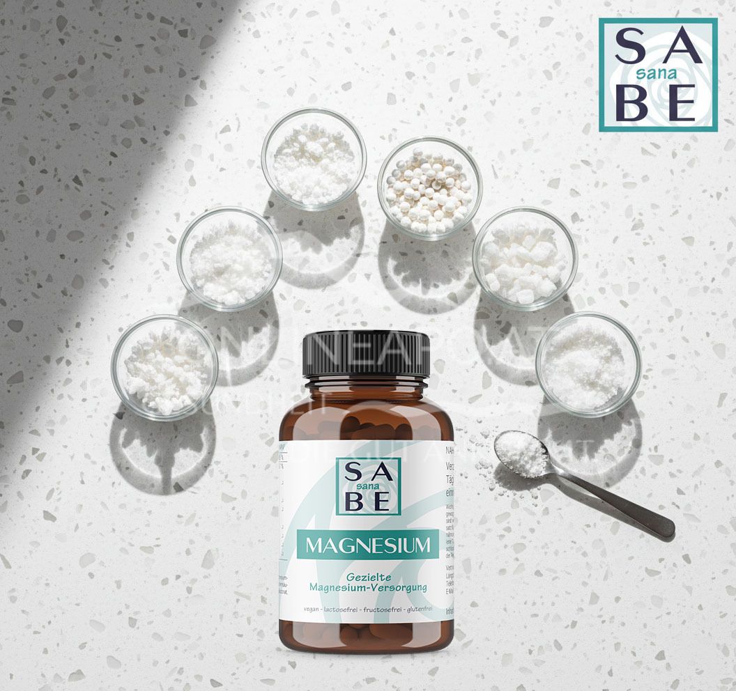 SABE sana Magnesium+ Kapseln sind ein Nahrungsergänzungsmittel zur Unterstützung für eine ausgewogene Magnesium-Versorgung. Der essenzielle Mineralstoff sorgt für eine normale Funktion des menschlichen Nervensystems und der Muskulatur.