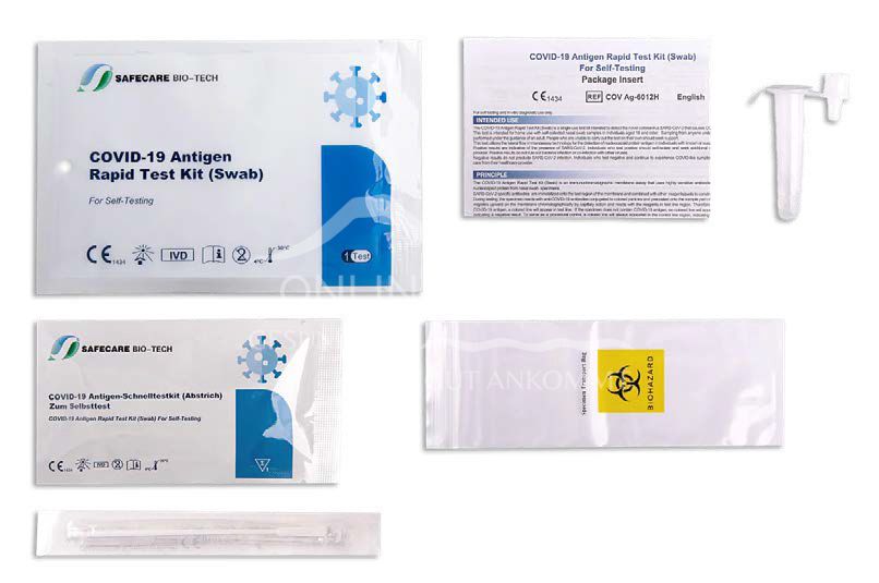 SAFECARE Covid-19 Antigen Laien-Schnelltest ist ein CE-zertifizierter Selbsttest zur Eigenanwendung zur Erkennung einer SARS-CoV 2 Infektion. Dient zur Anterior Nasal bzw. vorderer Nasenbereich (2,5 cm) Testdurchführung für Laien zur Eigenanwendung.