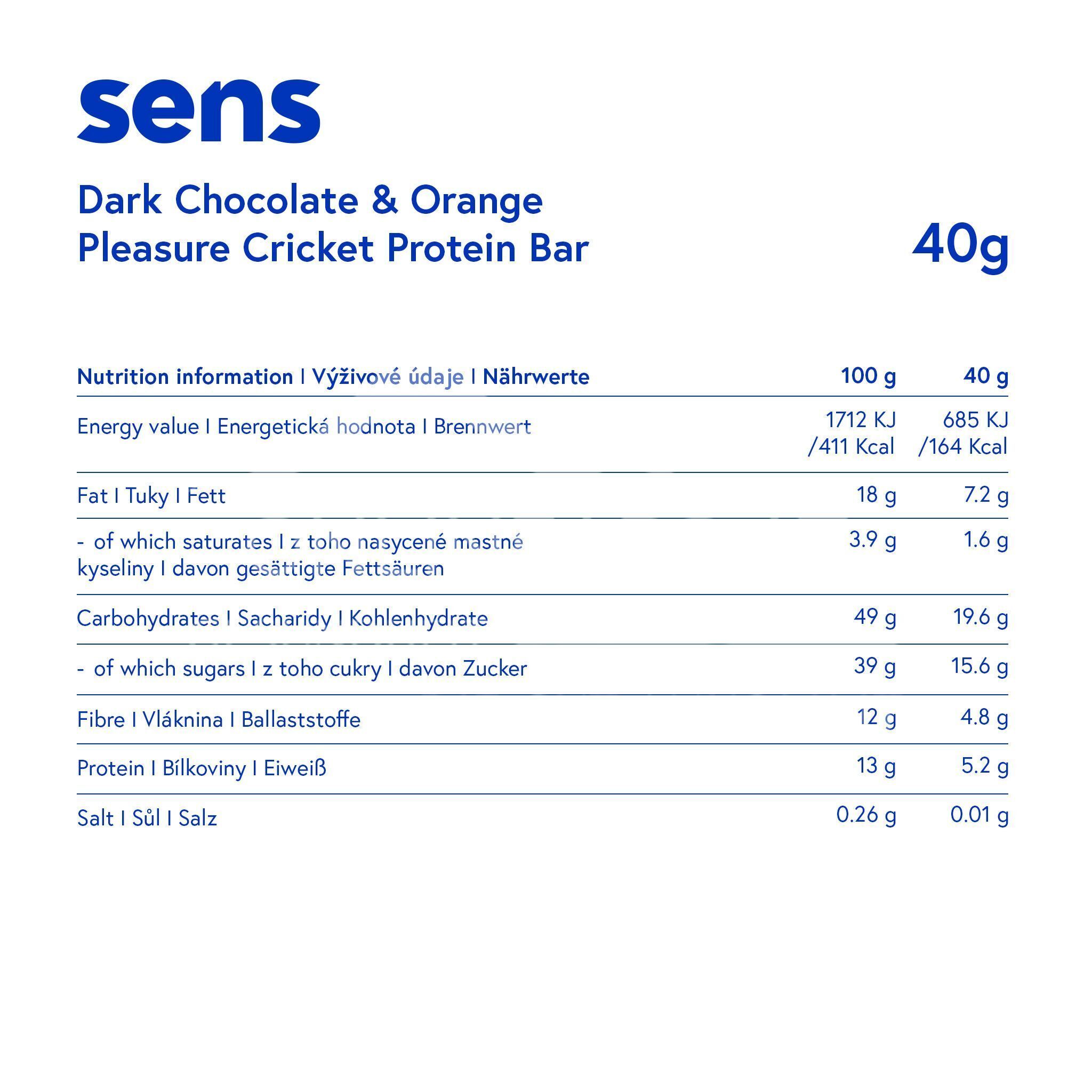 SENS Pleasure Proteinriegel mit Grillenmehl - Dunkle Schokolade & Orange