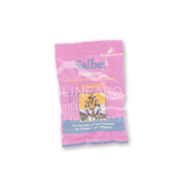 Eine besondere Kräuterspezialität mit Vitamin C und Waldhonig. Die ätherischen Öle des Salbeis verleihen dem Bonbon einen aromatischen Geschmack. Der flüssige Honigkern beruhigt und besänftigt zusätzlich den Hals und Hustenreiz.