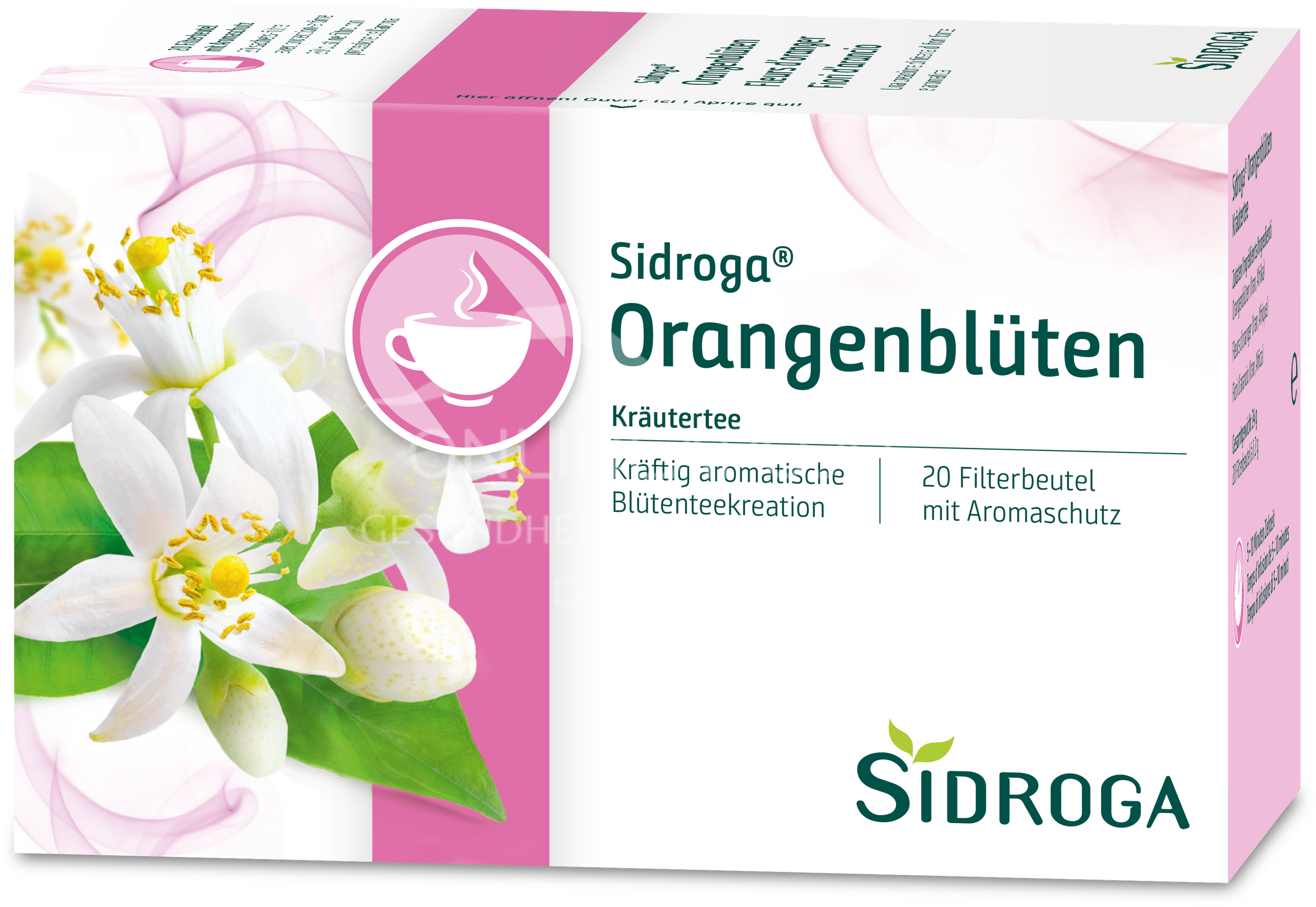 Sidroga® Orangenblüten Kräutertee ist eine kräftig aromatische Blütenteekreation. Ob pur oder in Kombination mit anderen Kräutern und Früchten, ob als Eistee an heißen Sommertagen oder zur Entspannung am Abend.