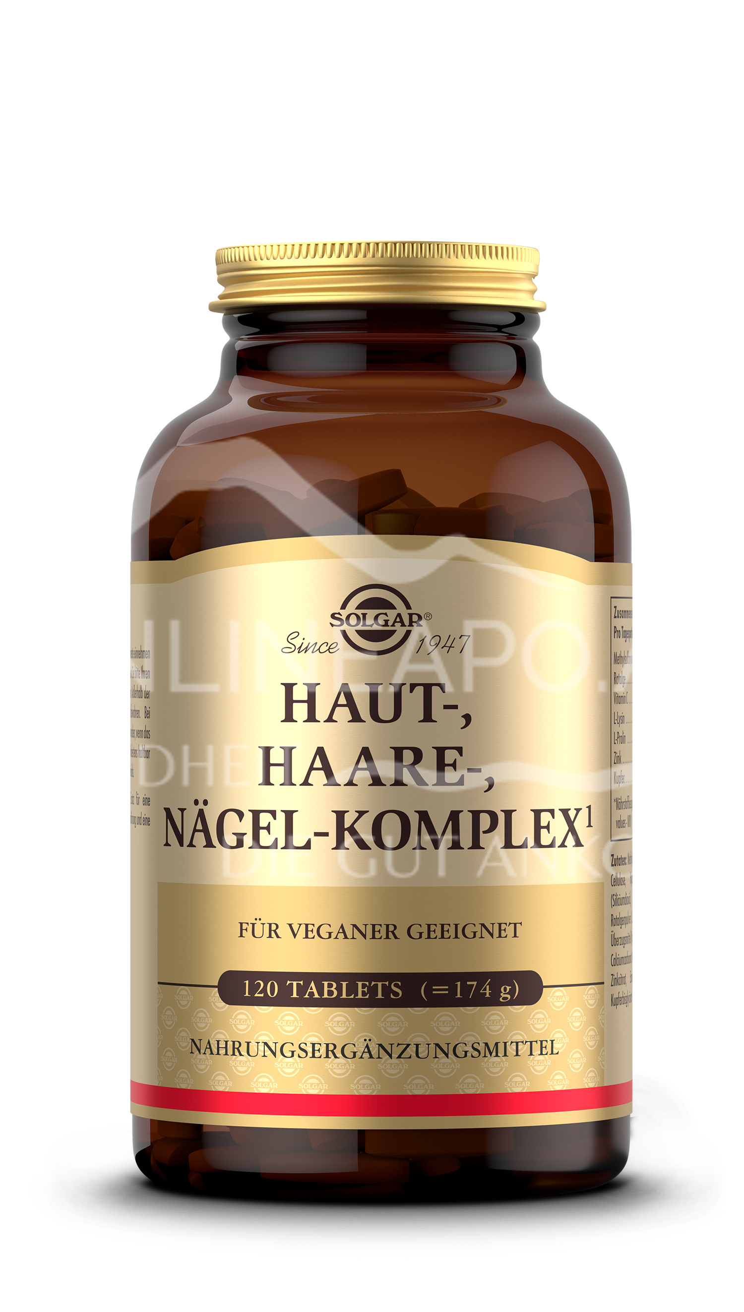 Solgar® Haut-, Haare-, Nägel-Komplex Tabletten sind eine Nahrungsergänzung, die mit einer Vielzahl von Nährstoffen angereichert ist, die für die normale Gesundheit von Haut, Haaren und Nägeln wichtig sind.