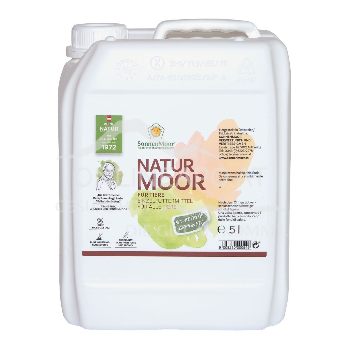 Naturmoor für Tiere in Trinkwasser oder eine Tagesration Futter mischen. Die Dosierung hängt von der Größe des Tieres ab.