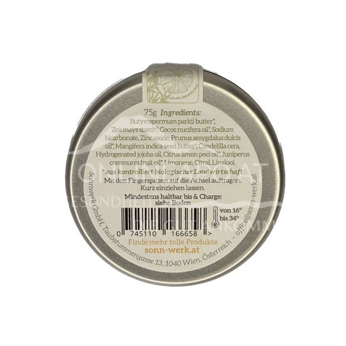 Sonnwerk Deo-Creme Zitrone/Wacholder: Naturkosmetik ohne Aluminium, Parabene & synthetische Duftstoffe. Genießen Sie langanhaltenden, natürlichen Schutz mit dem frischen, belebenden Duft von Zitrone und Wacholder.