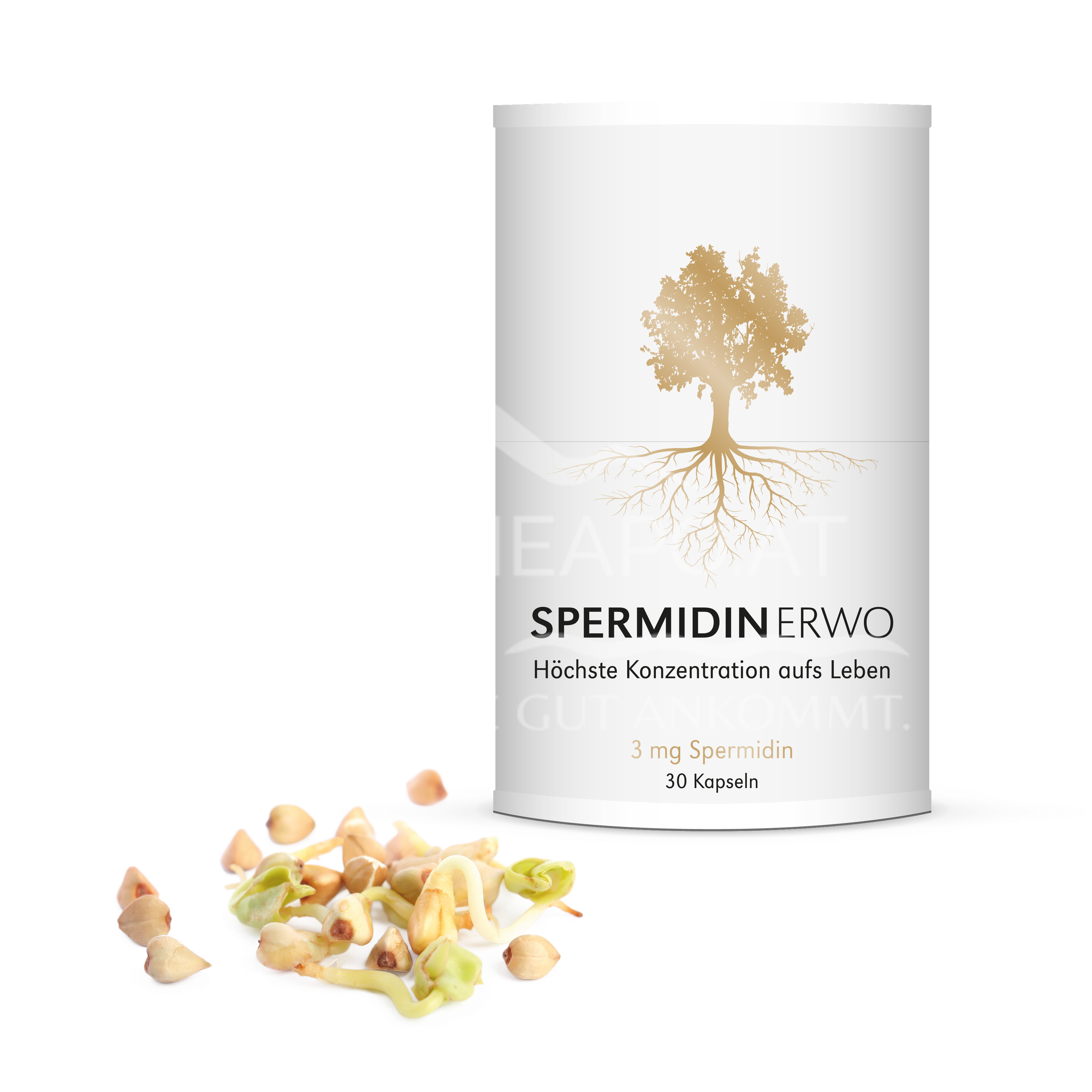 Spermidin ERWO 3mg Kapseln - Mit Spermidin ERWO erhalten Sie Spermidin aus natürlichen heimischen Buchweizenkeimlingen. Eine Kapsel enthält 3 mg Spermidin - einer optimalen Tages-Ergänzungsdosis.