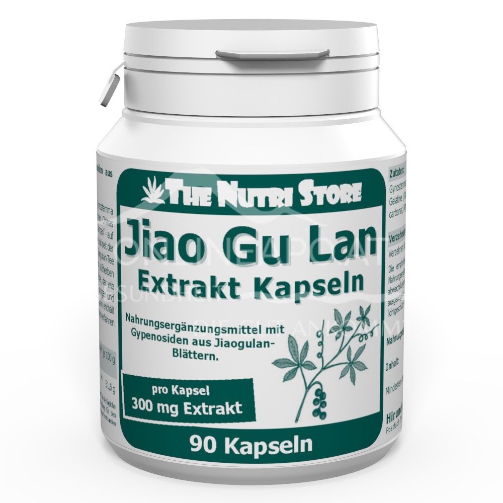 The Nutri Store Jiaogulan Extrakt Kapseln sind ein Nahrungsergänzungsmittel mit Gypenosiden aus Jiaogulan-Blättern mit 300 mg Extrakt pro Kapsel.
