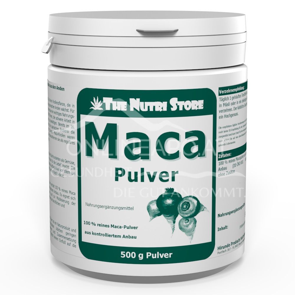The Nutri Store Maca Pulver ist ein Nahrungsergänzungsmittel aus 100 % reinem Maca-Pulver aus kontrolliertem Anbau. Die Macawurzel ist als natürliches Aufbaumittel vor allem bei gestressten Menschen und Sportlern hoch beliebt.