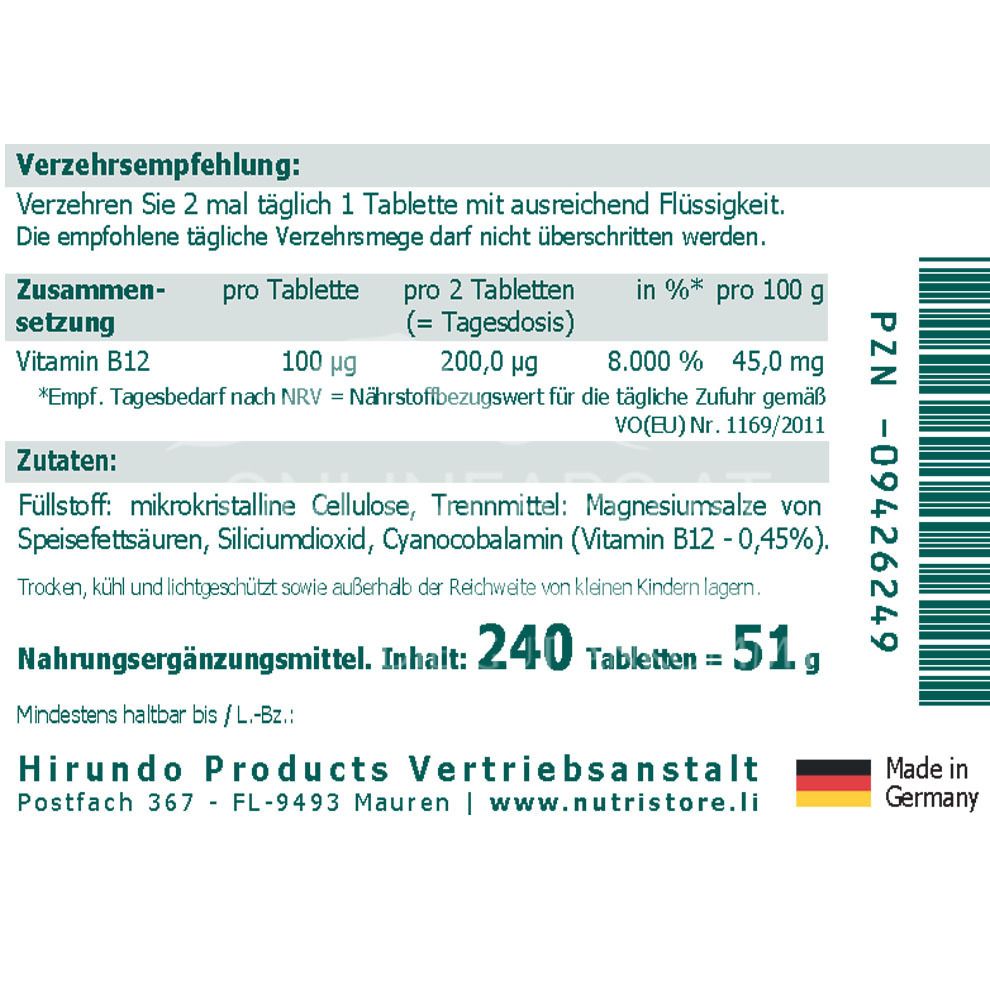 Produktinformationen "The Nutri Store Vitamin B12 100 µg vegane Tabletten"
