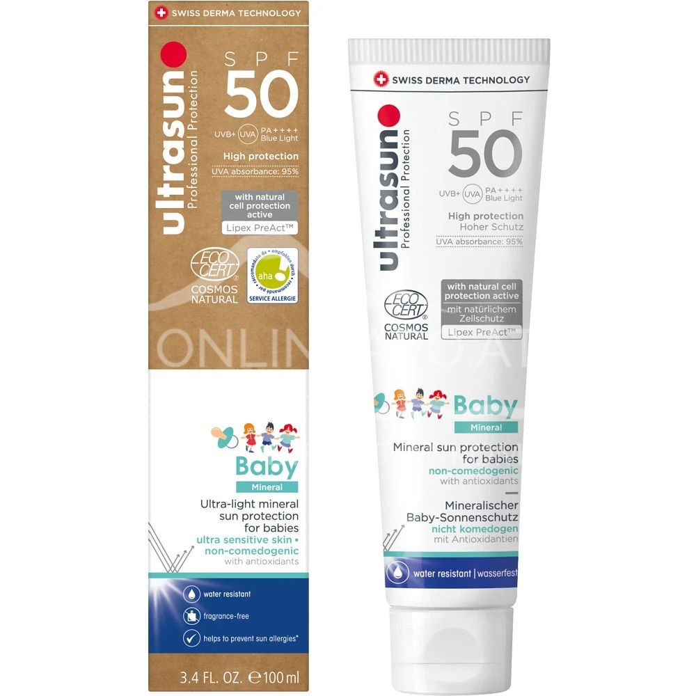 Schütze die zarte Haut deines Babys mit der ULTRASUN Mineral Baby Sonnenschutzcreme SPF50. Mineralische Filter bieten zuverlässigen UVA/UVB-Schutz ohne chemische Zusätze. Ideal für empfindliche Haut.