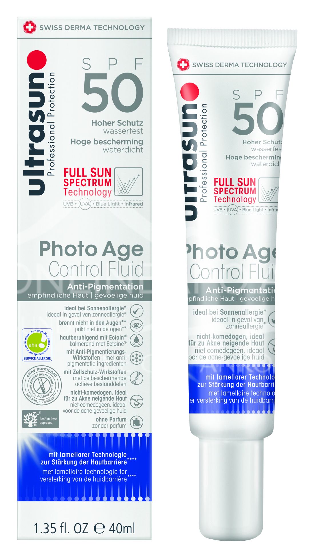 ULTRASUN Photo Age Control Fluid Anti Pigment SPF50 ist ein wasserfester Sonnenschutz für empfindliche Haut, ideal bei Sonnenallergie. Wirkt hautberuhigend mit Ectoin, nicht-komedogen und ideal für zu Akne neigende Haut.