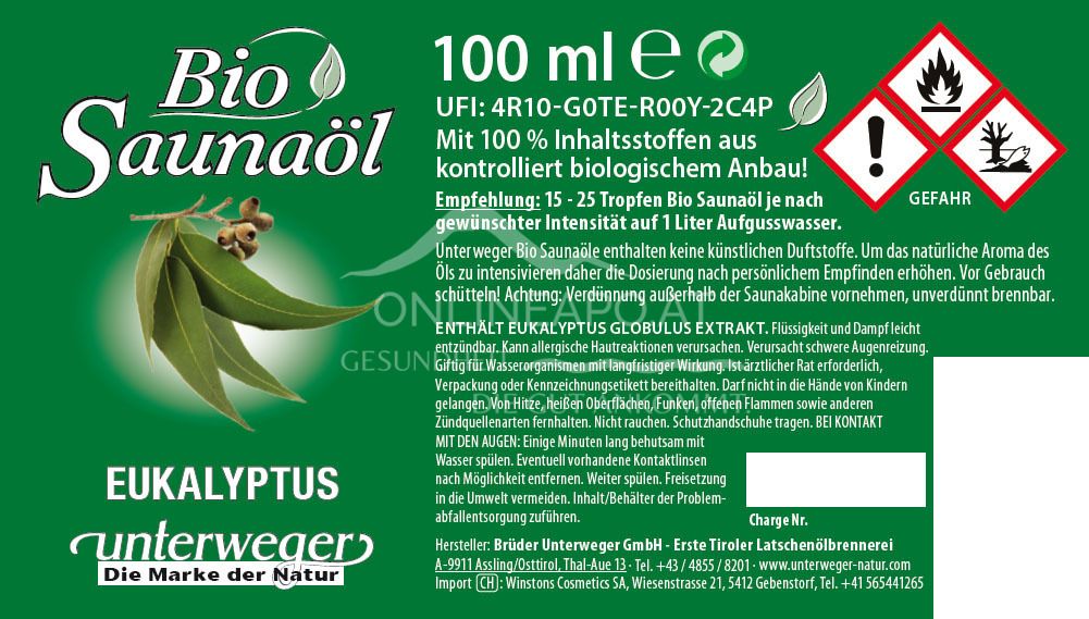 Verwandeln Sie Ihren Saunagang in eine Oase der Erfrischung! Das Unterweger Bio Saunaöl mit naturreinem Eukalyptus sorgt für einen klaren, belebenden Duft, der Körper und Seele stimuliert. Ideal für einen befreiten und tiefen Atemzug.