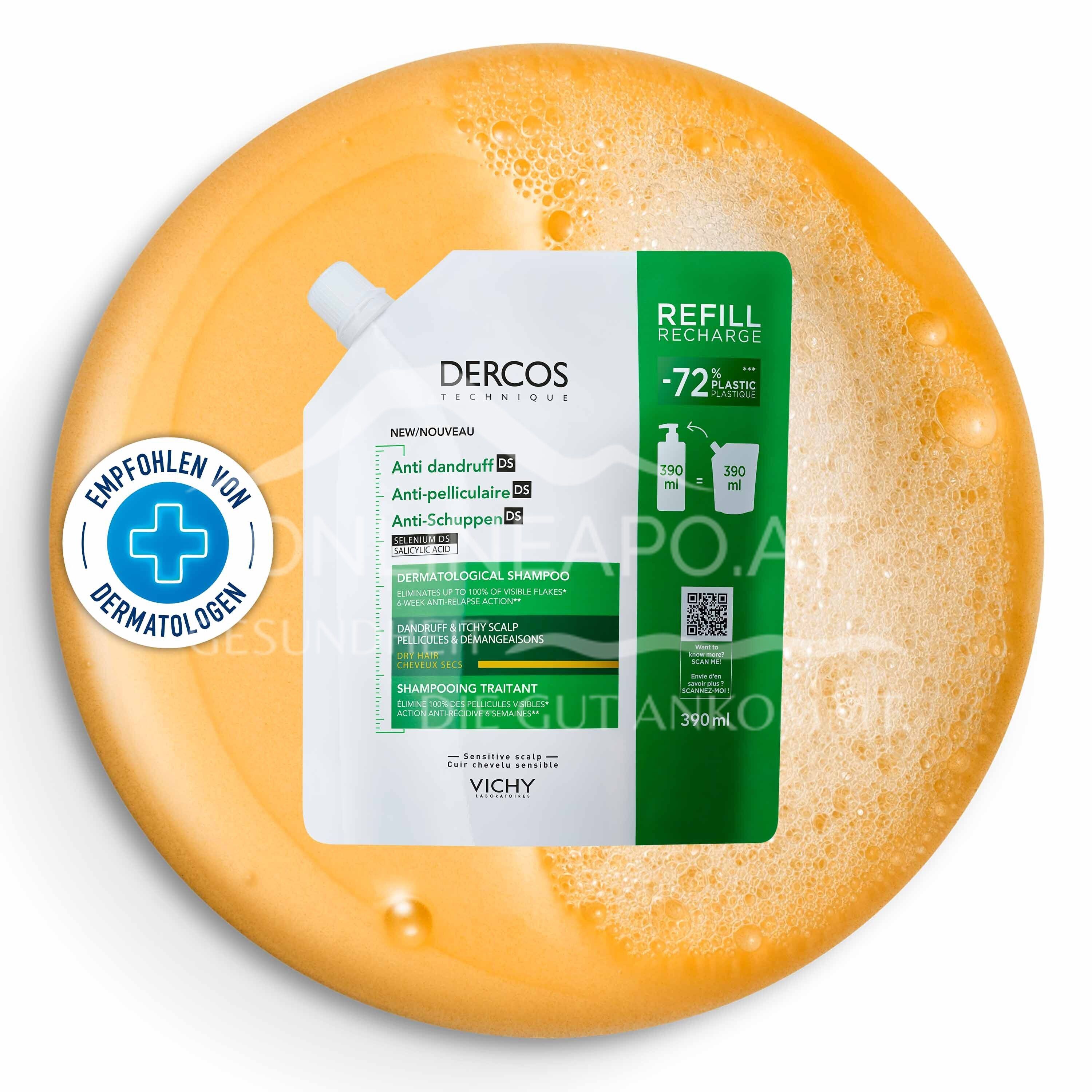 Vichy DERCOS Anti-Schuppen Shampoo für trockenes Haar: entfernt Schuppen und mildert Juckreiz, versorgen trockene Kopfhaut und beugen einer erneuten Schuppenbildung vor.