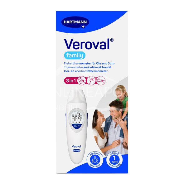 Das Veroval® family Fieberthermometer für Ohr und Stirn ermöglicht eine sekundenschnelle Messung. Dank Infrarot-Technologie ist es ideal für Kinder und die gesamte Familie geeignet.