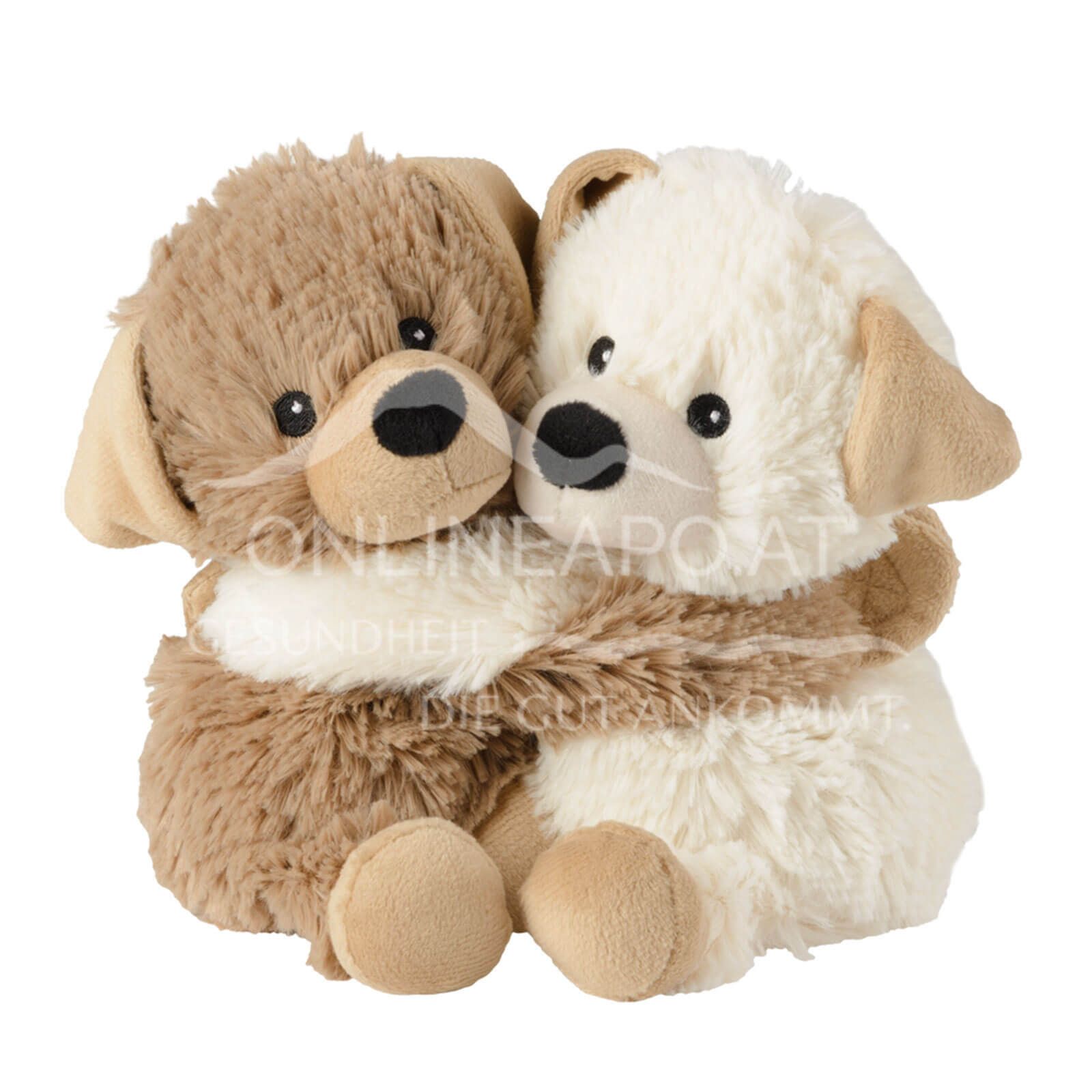 Wer kann da schon widerstehen?! Die beiden süßen Hündchen haben einander so lieb, dass sie sich gar nicht mehr loslassen wollen, es sei denn, Du nimmst sie in Deine Arme. Die Hundearme sind durch Klett miteinander verbunden - zum Erwärmen einfach auseinandernehmen und einzeln für 30 Sekunden in die Mikrowelle setzen. Diese süßen Kuschel-Freunde gibt man nicht mehr her. Zusammen sind sie etwa 24 cm hoch, 18 cm breit und wiegen ca. 530 g.