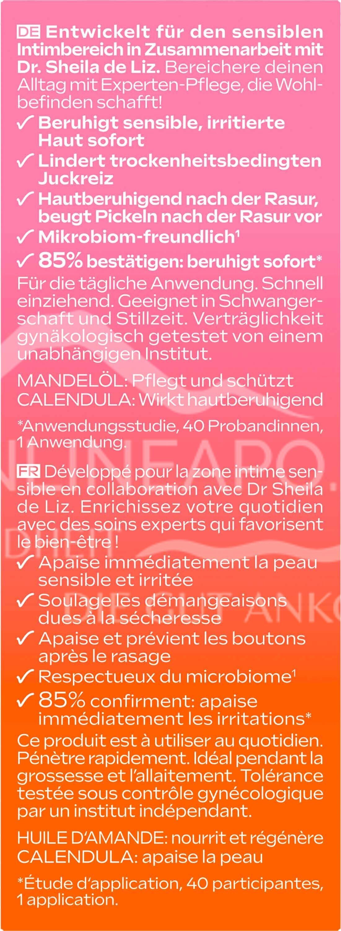 Mikrobiomfreundliche, beruhigende Ölkomposition für den äußeren Intimbereich, entwickelt in Zusammenarbeit mit Dr. Sheila de Liz
