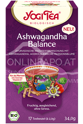 Yogi Tea Ashwagandha Balance ist eine köstliche und wohltuende Teemischung aus der Tradition des Ayurveda. Die erlesenen Zutaten, wie Ashwagandha, Acerola-Kirsche und Passionsblume, unterstützen ein ausgeglichenes Wohlbefinden.