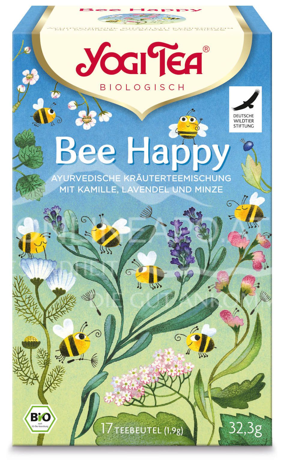 Die Yogi Tea Bee Happy - Ayurvedische Gewürzteemischung ist ein köstlicher und nachhaltiger Bio-Tee. Ayurvedische Kräutermischung mit blumigem Geschmack - Kamille, Lavendel und Minze.