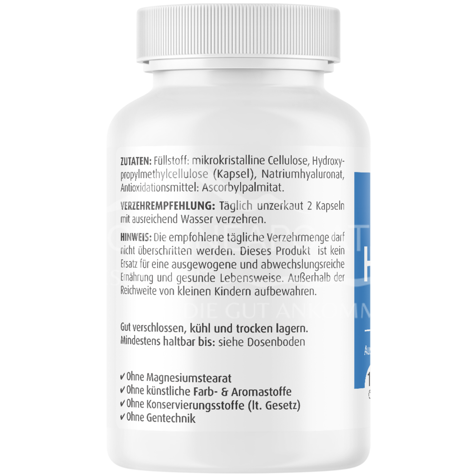 - Zutaten: Füllstoff: mikrokristalline Cellulose, Natriumhyaluronat, Hydroxypropylmethylcellulose (Kapsel).