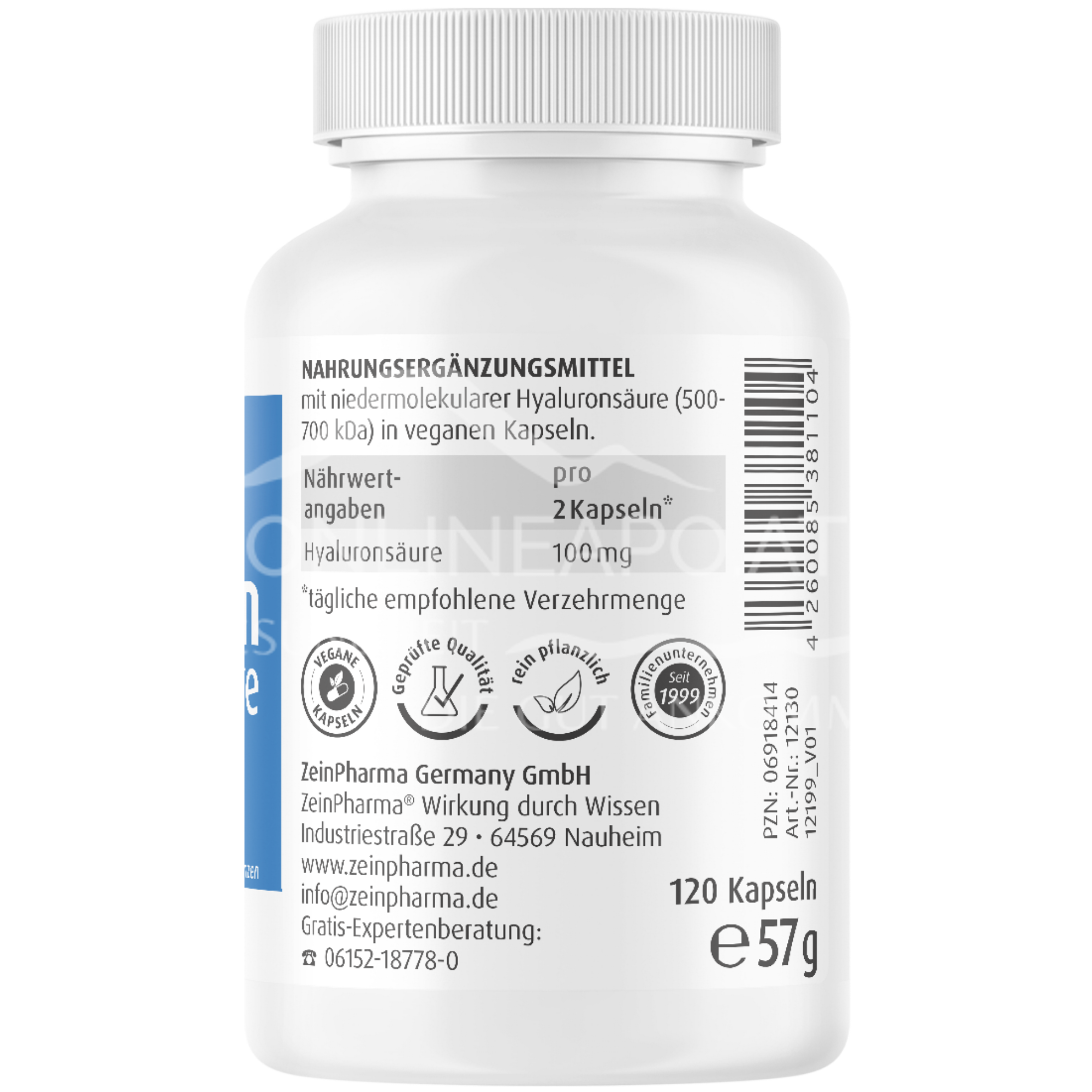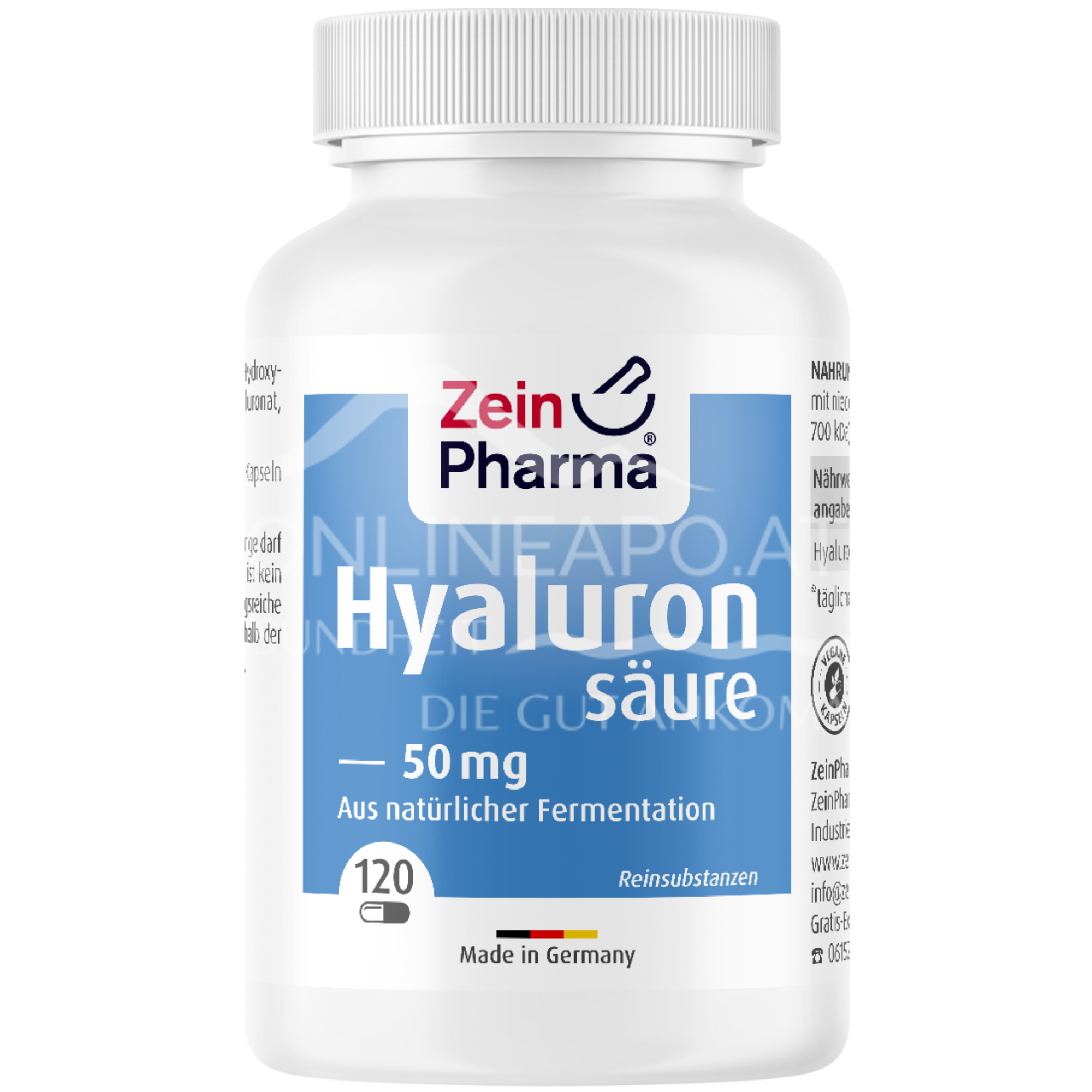 Die ZeinPharma Hyaluronsäure 50 mg Kapseln sind ein Nahrungsergänzungsmittel mit niedermolekularer Hyaluronsäure aus natürlicher Fermentation und durch Molekülgrößen von 500-700 kDa hochbioverfügbar.