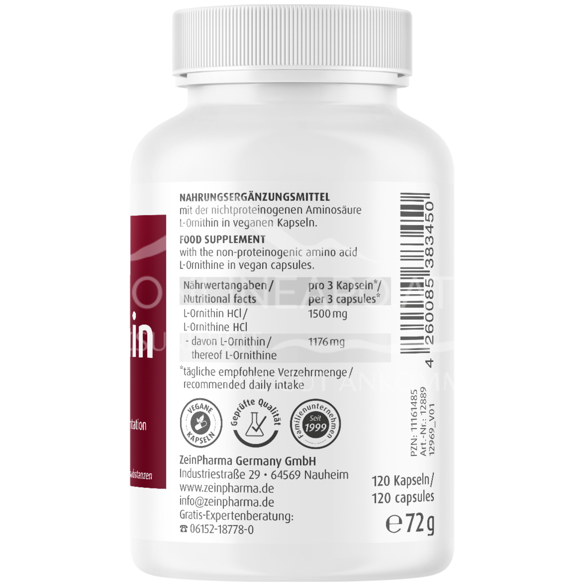 Produktinformationen "ZeinPharma L-Ornithin Kapseln 500 mg"