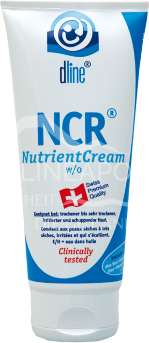 dline® NCR® NutrientCream ist eine Wasser in Öl Creme mit einem Lipidgehalt von 40 %, besonders für trockene bis sehr trockene, irritierte und schuppende Haut geeignet.