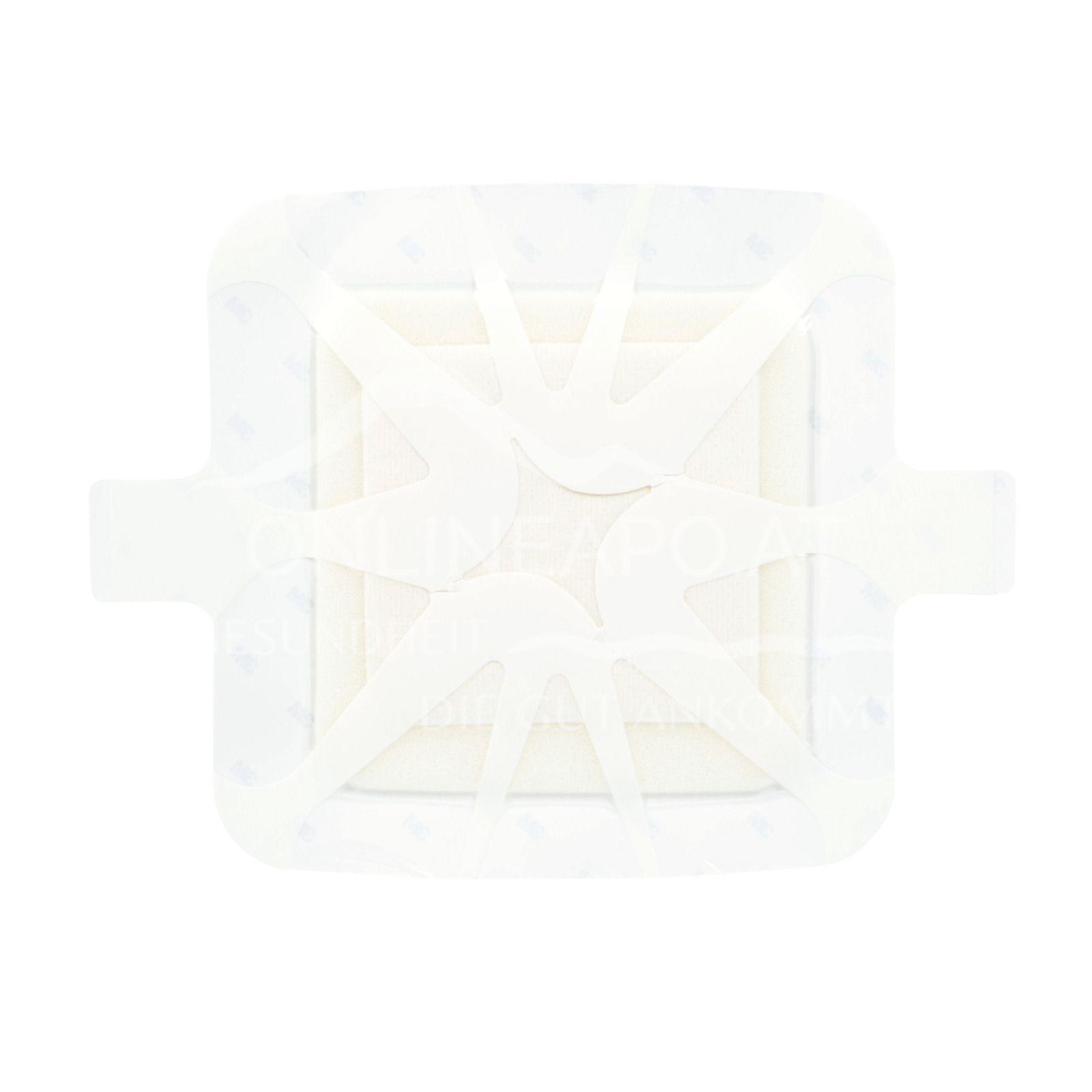 The patented spoke application system in combination with the extra-thin adhesive edge allows a precise fit and, if necessary, even one-handed application. The hypoallergenic 3M polyacrylate adhesive specially developed for this purpose ensures a long-lasting, perfect fit. The foam dressing with superabsorbent and moisture-regulating layer is particularly suitable for slightly to heavily exuding wounds.