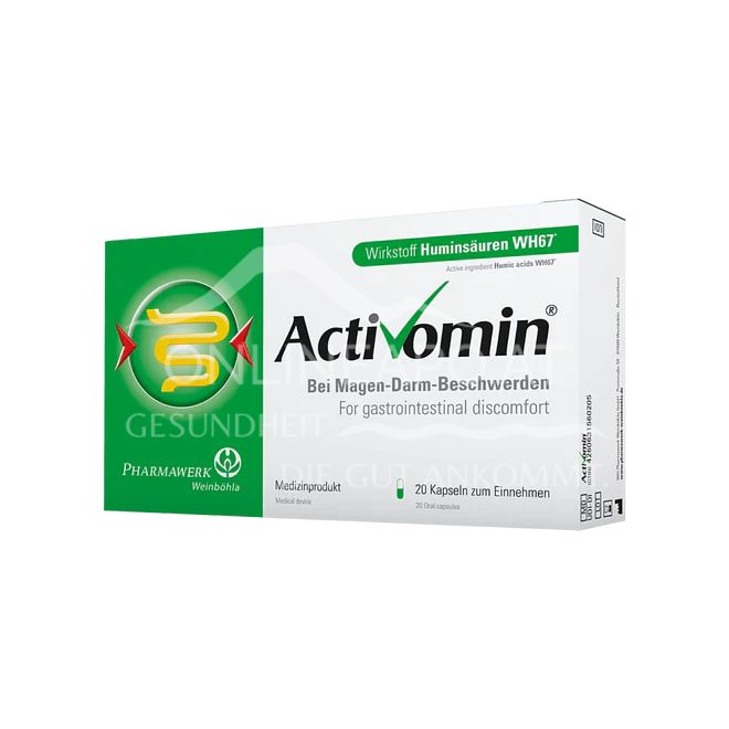 Activomin® capsules are a medical product with the active ingredient humic acid WH67 to support the stomach and intestines! Activomin® has the ability to firmly bind harmful substances and toxins in the human intestine.