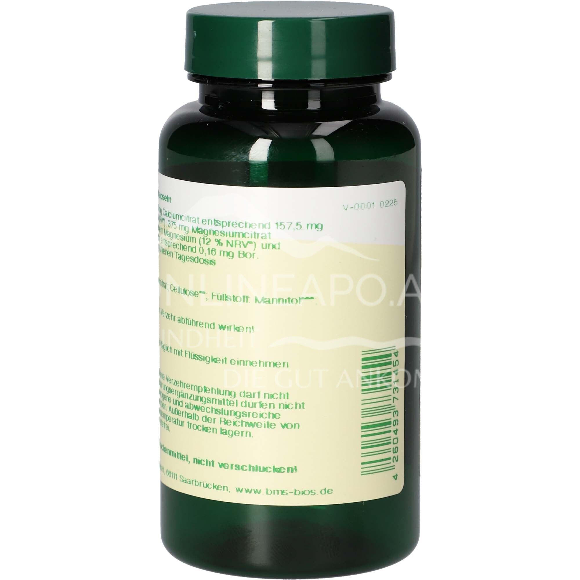 - Zusammensetzung pro Tagesdosis (4 Kapseln) %NRV*: 750 mg Calciumcitrat entsprechend 157,5 mg reinem Calcium (19,7 % NRV*), 375 mg Magnesiumcitrat entsprechend 45 mg reinem Magnesium (12 % NRV*) und 1,66 mg Bororganic Glycin entsprechend 0,16 mg Bor. *NRV = Prozent der empfohlenen Tagesdosis.