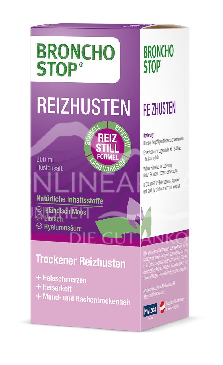 - BRONCHOSTOP® Reizhusten Saft wird für Kinder ab 1 Jahr empfohlen.