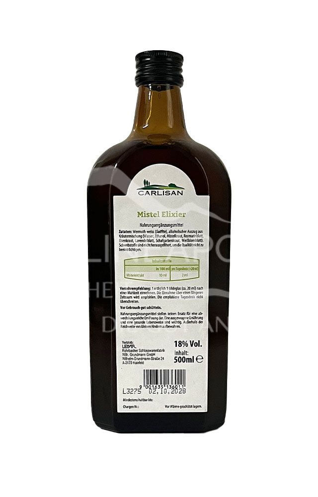 Entdecken Sie das Carlisan Mistel Elixier als bewährtes Mittel zur sanften Unterstützung des Organismus. Die hochwertigen Extrakte der Mistel bieten eine verlässliche Basis für Ihre tägliche Gesundheitsroutine.